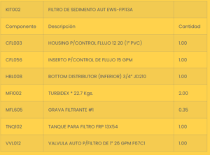 >Servicio GPM: 9 >Retrolavado GPM: 15